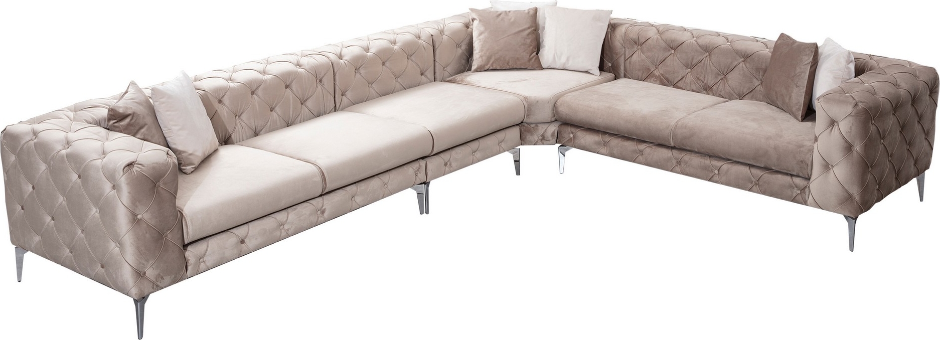Sofa laget av bøketre med ben av metall og møbeltrekk av polyester. Sofaen har faste ryggputer, avtagbare seteputer og et stoff som kan renses. 5 stk. pynteputer inkludert.