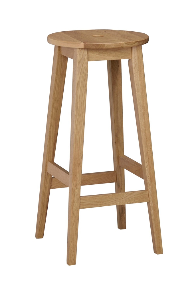 Tidløs krakk i massiv lakkert eik. Klassisk design i høyere modell med rundt sete. Funksjonelt hull i midten for enkel flytting. Krakken inngår i vår serie Confect.