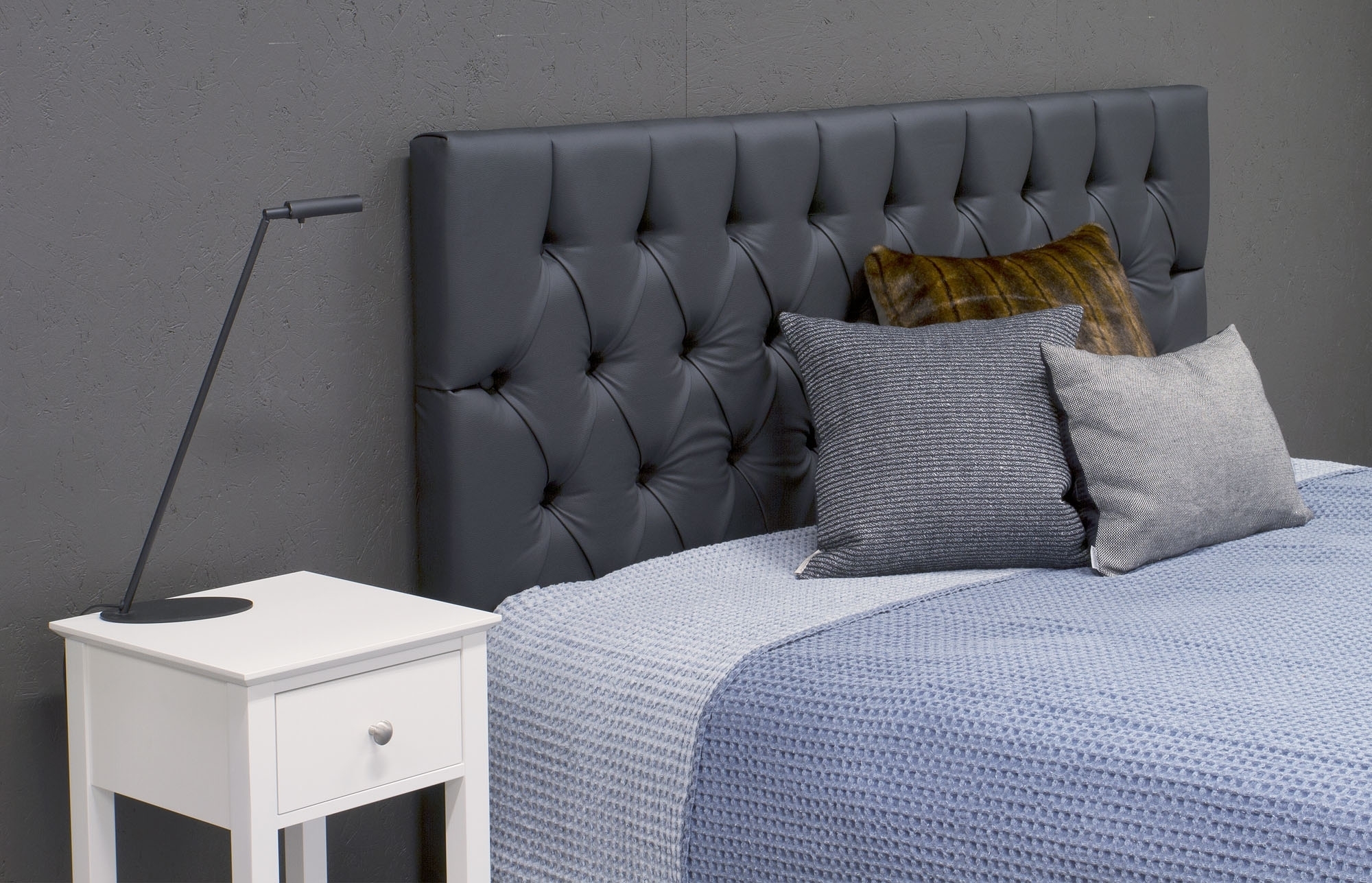 Black night er en sengegavl med svart kunstskinn av høyeste kvalitet! Sengegavlen lages med dyptheftede knapper og et utførelse som tilfører soverommet luksus og atmosfære.