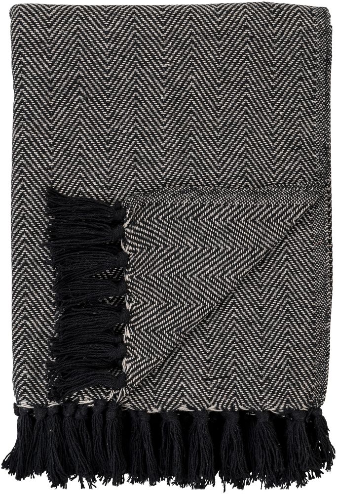 Pledd i svart og hvit bomull.