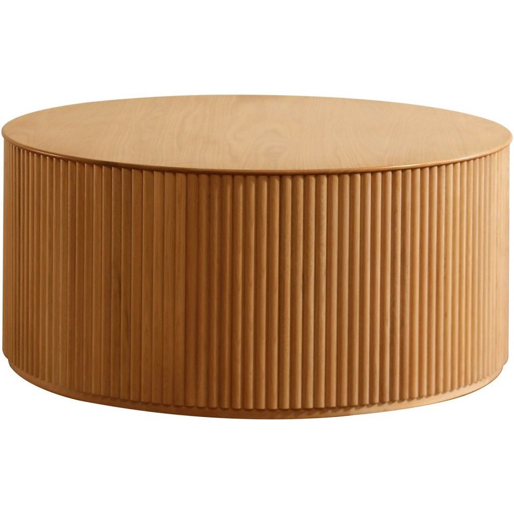 Pent og romslig sylinderformet salongbord, bestående av solide eikestenger og en massiv kantstrimmel, bordplate av finér i eik.