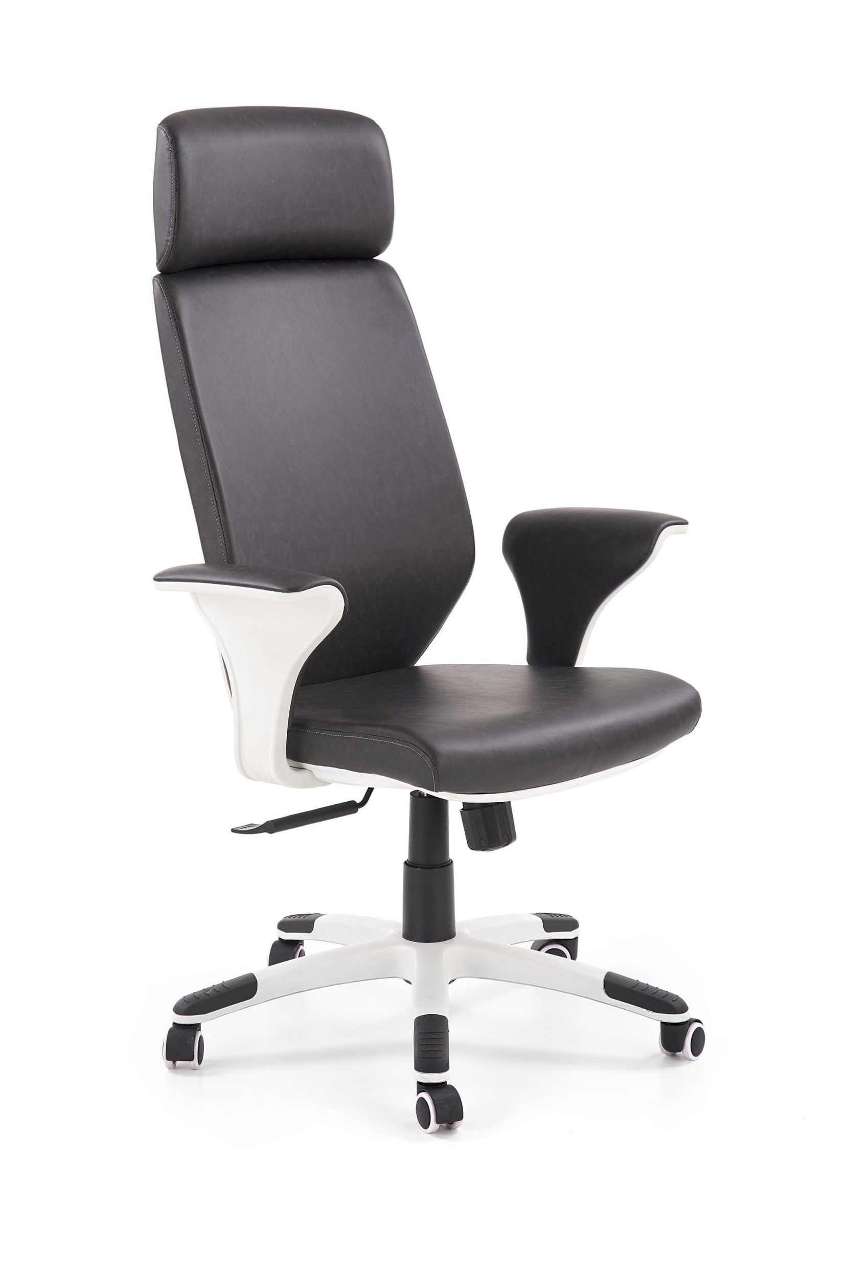 En fin kontorstol med et stilrent design. Stolen er kledd med komfortabelt kunstskinn for maksimal komfort. Setet kan heves og senkes ved hjelp av spaken under setet og stolen er lett å flytte takket være hjulene på stjernefoten.
