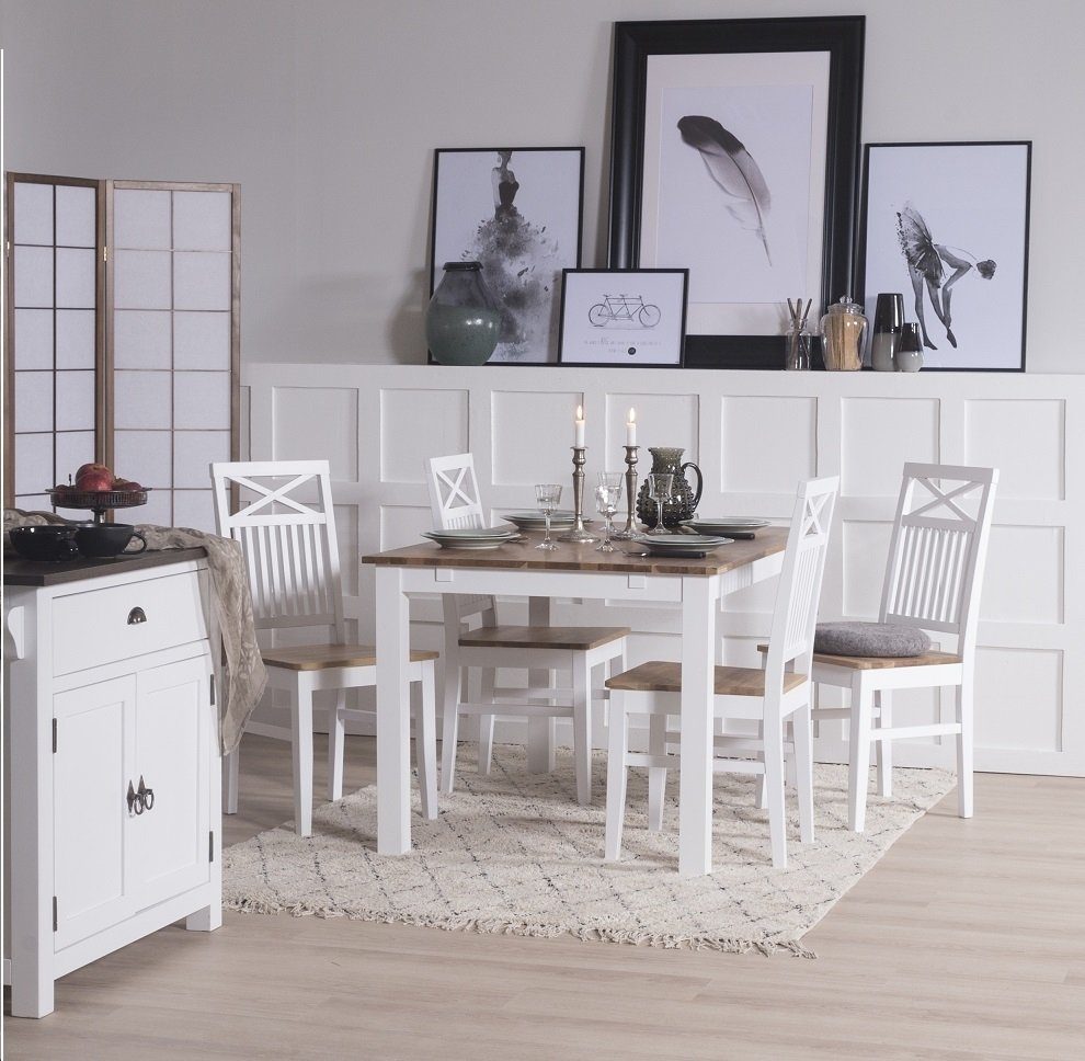 Dalarös spisegruppe 140 cm bord hvit/eik med 4 st stoler