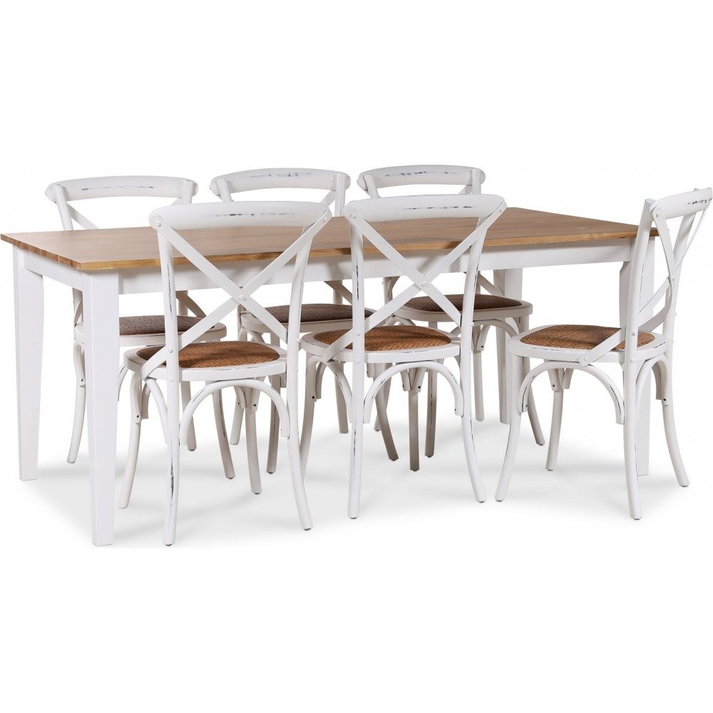 Dalarös spisegruppe 180 cm bord hvit/eik + 6 st hvite Gaston spisestoler: