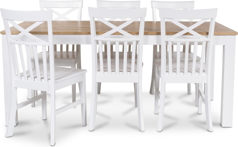 Dalarös spisegruppe 180 cm bord hvit/eik + 6 st Mellby spisestoler