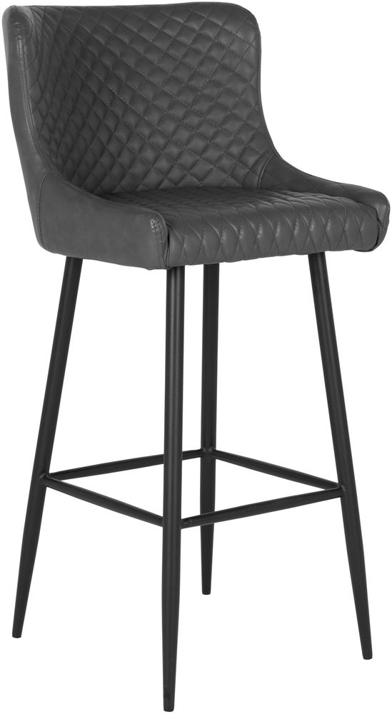 Barstol i mørkegrå syntetisk skinn med svarte ben.