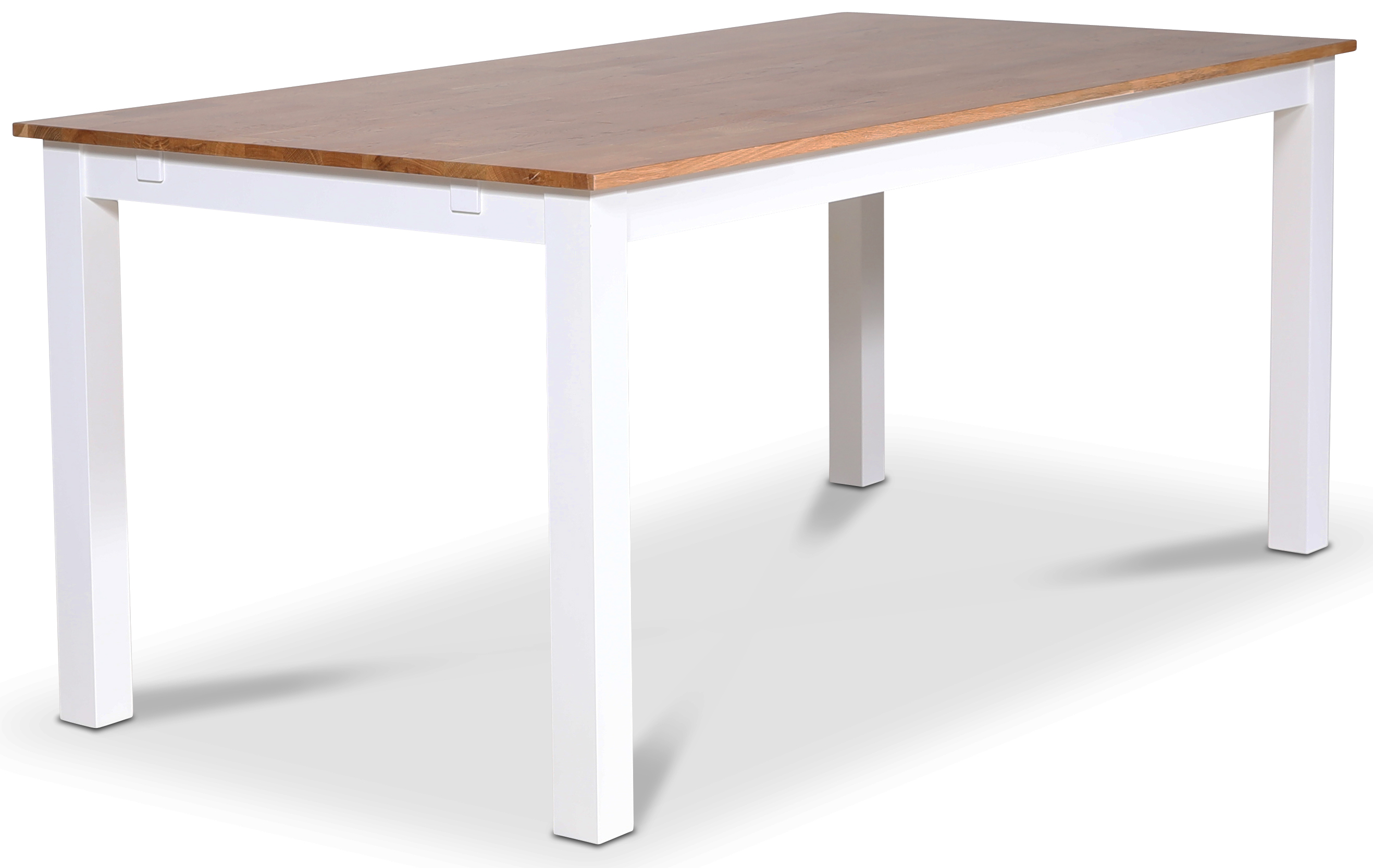 Dalsland spisegruppe: Spisebord i Eik/hvit med 6 duer blå Pinnstolar
