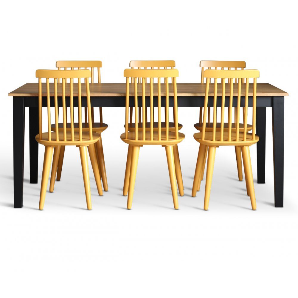 Dalsland spisegruppe: Spisebord i sort/eik med 6 gule knaggstoler