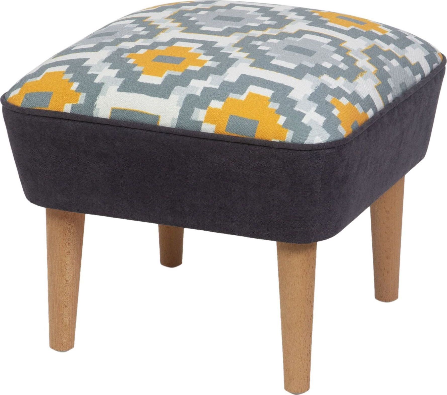 Puff laget av tre med akrylstoff.