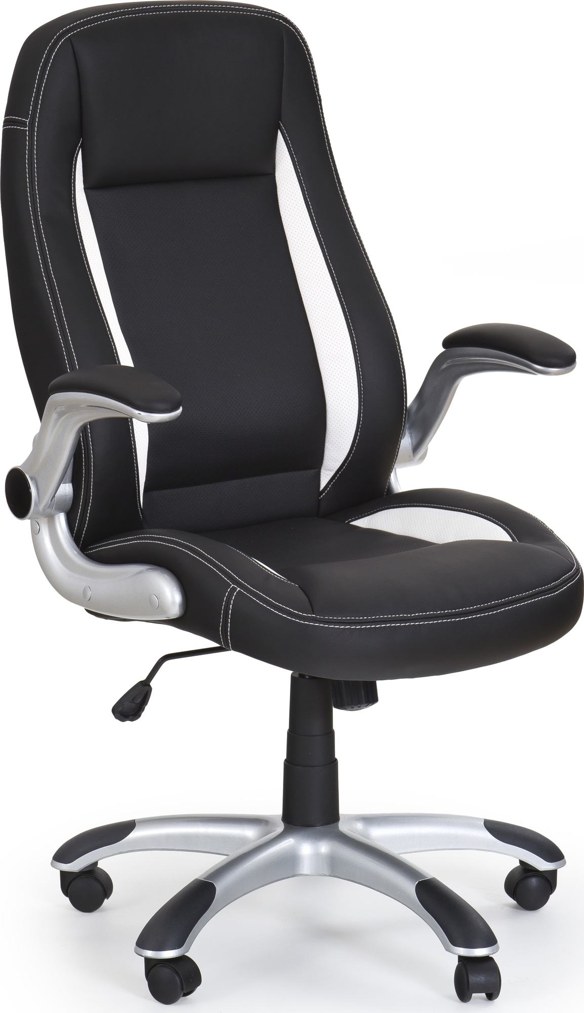 Behaglig kontorstol med et stilrent design. Kledd med et svært behagelig kunstskinn for maksimal komfort. Justerbare armlener, setet kan senken og heves samt at stolen er lett å flytte takket være hjulene på stjernefoten.