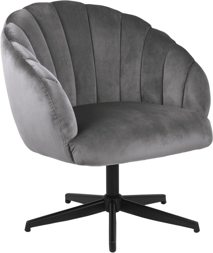 Lenestol kledd med et veldig behagelig fløyelstoff for maksimal komfort. Stjernefot laget av svart pulverlakkert metall.