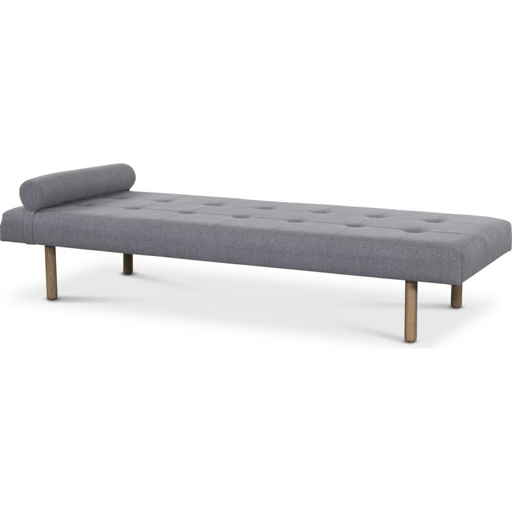 Daybed Vila er en koselig og stilren dagseng med moderne design, noe som gir et stilrent inntrykk. Perfekt til bruk som ekstra seng- eller sitteplasser. Runde treben i oljet eik. Grått slitesterkt stoff. Sylinderformet pute medfølger i samme stoff som dagsengen.
