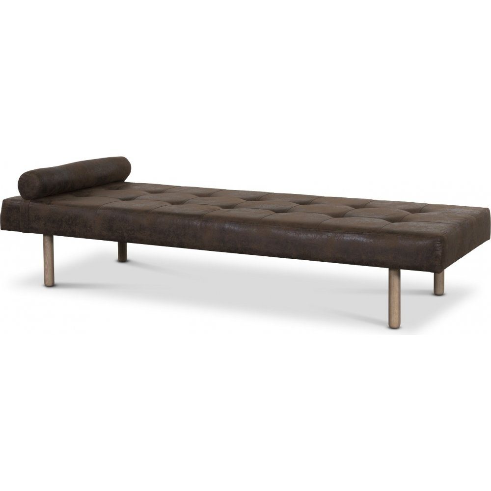 Daybed Vila er en koselig og stilren dagseng med et moderne design som gir et stilrent inntrykk. Perfekt å bruke som ekstra seng eller sitteplasser. Runde trebein i oljet eik. Brun vintage slitesterkt stoff. Sylinderformet pute følger med i samme stoff som dagsengen.