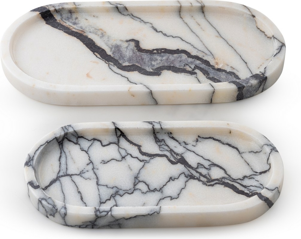 Dekorativt fat i hvit marmor fra Sicilia 2 deler - 25/30 x 12/15 x 2 cm