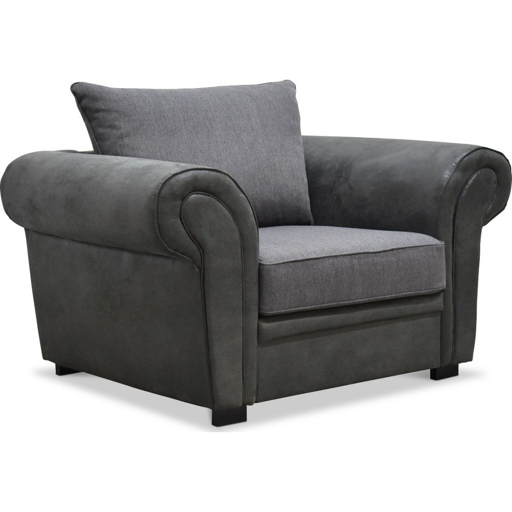 Delux lenestol er en stor lenestol med sjenerøs sitteoverflate for det nordiske hjemmet. Blandingen av grå, antrasitt vintage gir et kult inntrykk. Høykvalitets kaldskum med fibertopp for å gi en god sittekomfort.