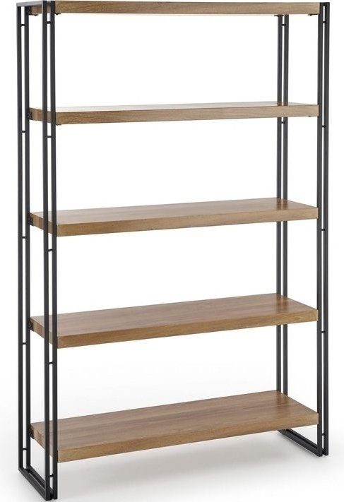 En nydelig bokhylle med et moderne design. Bokhyllen har 5 hyller til praktisk oppbevaring, som er laget av MFP (premium treplate) med en nydelig finér. Selve rammen er laget av pulverlakkert metall.