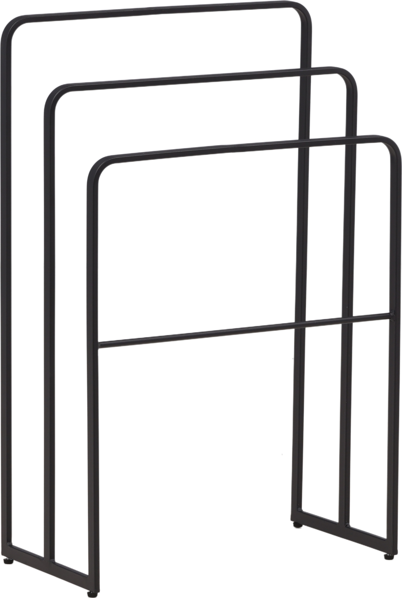 Smart oppbevaringsløsning og iøynefallende interiørdetalj. Denne slanke sorte metallkonstruksjonen har et minimalistisk design med tre hengende braketter. Plasser i gangen, badet eller soverommet - rett og slett der det trengs mest og kan hjelpe til med de mest ettertraktede bruksområdene.
