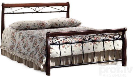 En fin dobbeltseng med et moderne design. Sengen er laget av tre med en veldig vakker finér i antikk kirsebærsutførelse og svart metall.