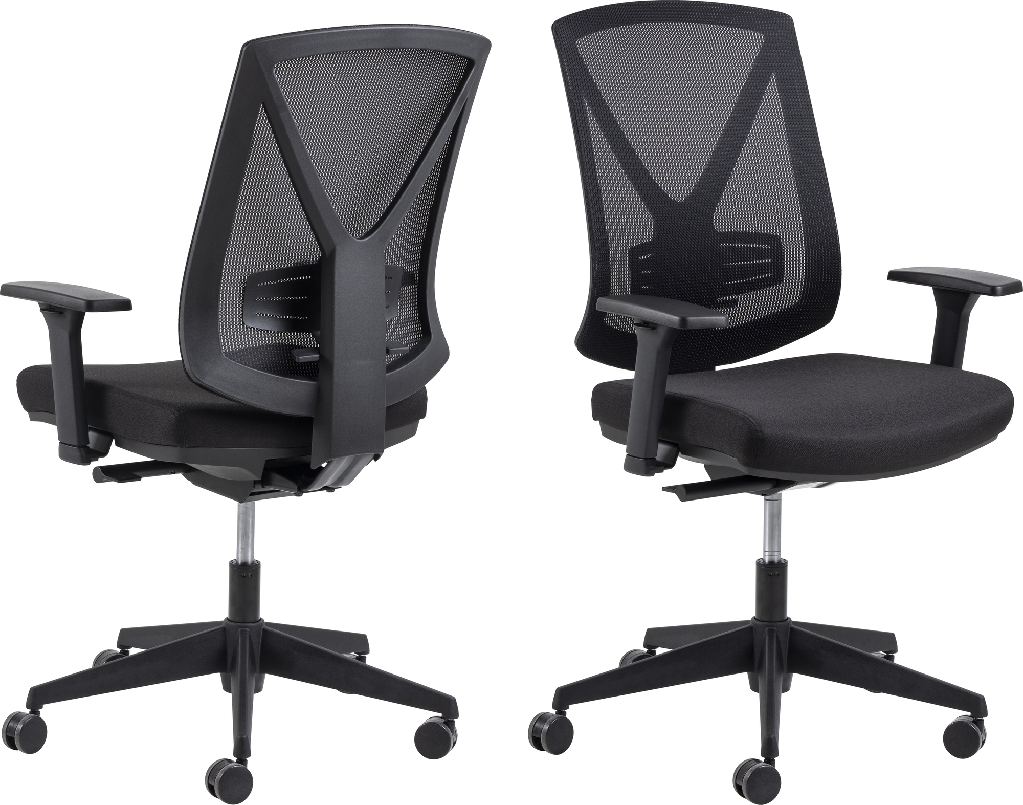 Kontorstol med ben av nylon og stofftrekk i mesh.