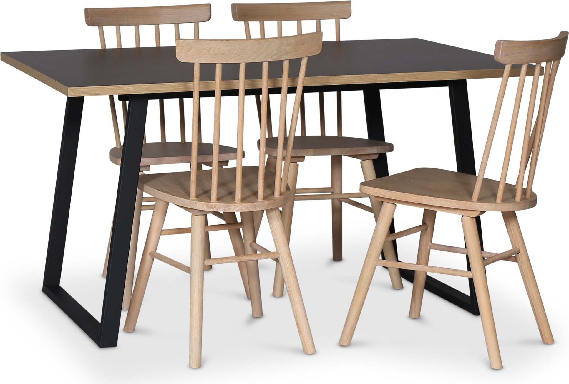 Edge 3.0 spisegruppe 140x90 cm inkludert 4 stk. hvitoljede Orust pinnestoler - svart høytrykkslaminat (HPL)