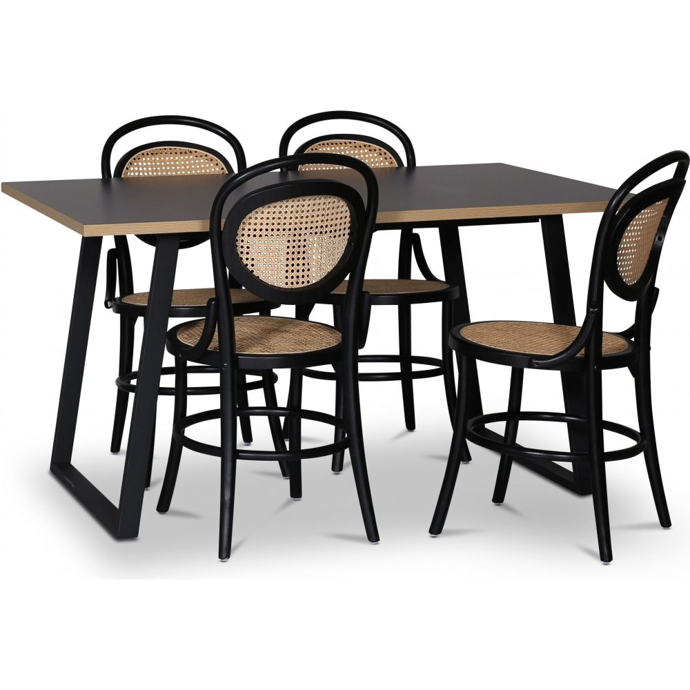 Inkludert 4 stk. Alicia stol i bøyd tre av massiv bøk, svart ramme med naturfarget rotting i sete og ryggstøtte.