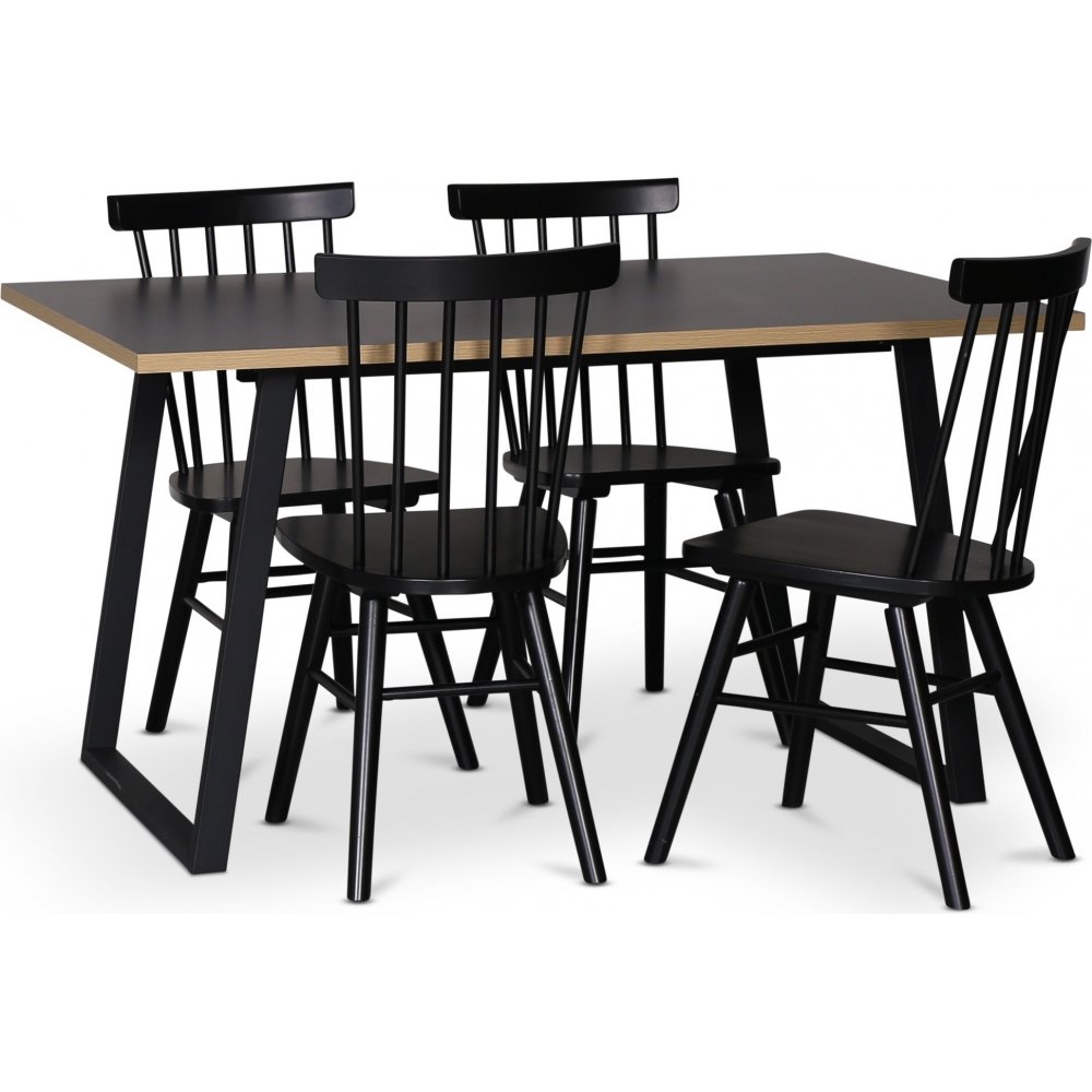Inkludert 4 stk. Orust pinnestoler, en svenskdesignet klassisk pinnestol laget av massivt tre som gir stolen en god tyngde og kvalitet. Stolen er i en svart lakkert versjon med seks ribber i stolryggen. Den har et dypere sete og en mer stabil konstruksjon enn de fleste pinnestoler på markedet.