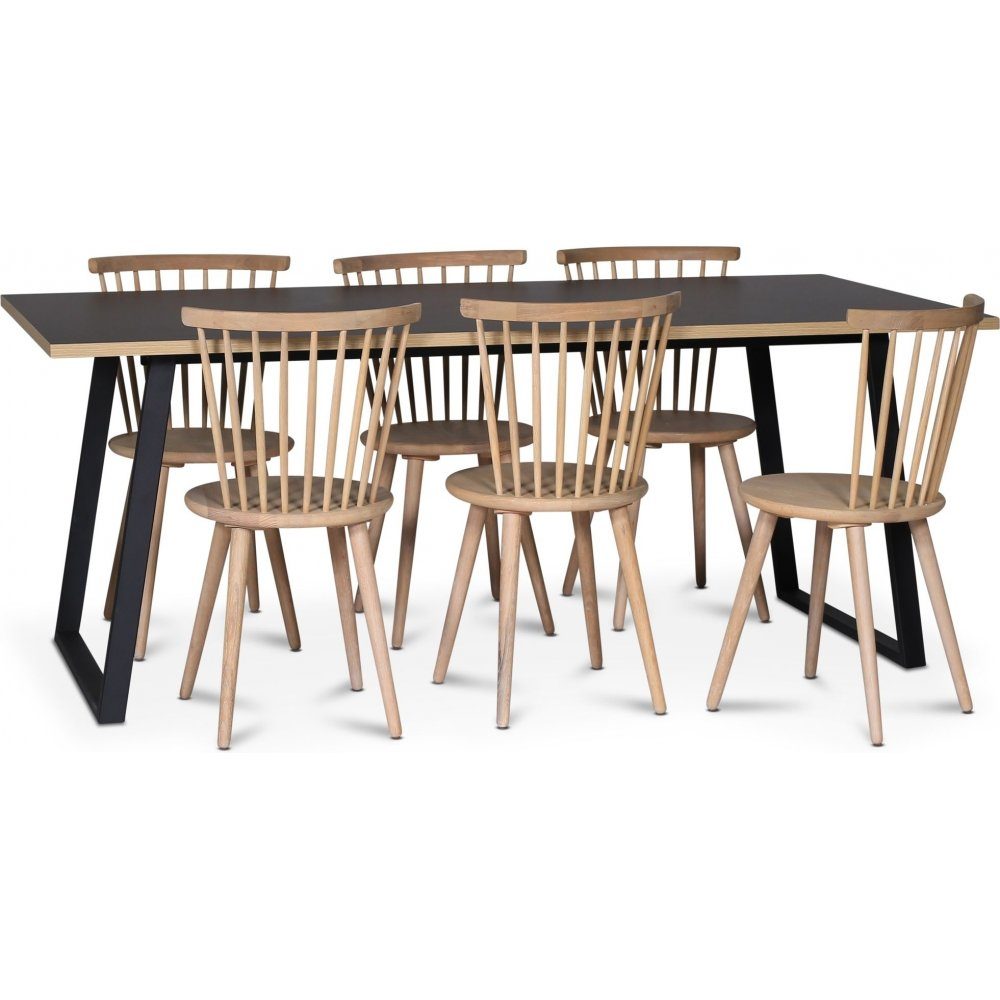 Edge 3.0 spisegruppe 190x90 cm inkludert 6 stk. hvitoljede Castor pinnestoler - svart høytrykkslaminat (HPL)