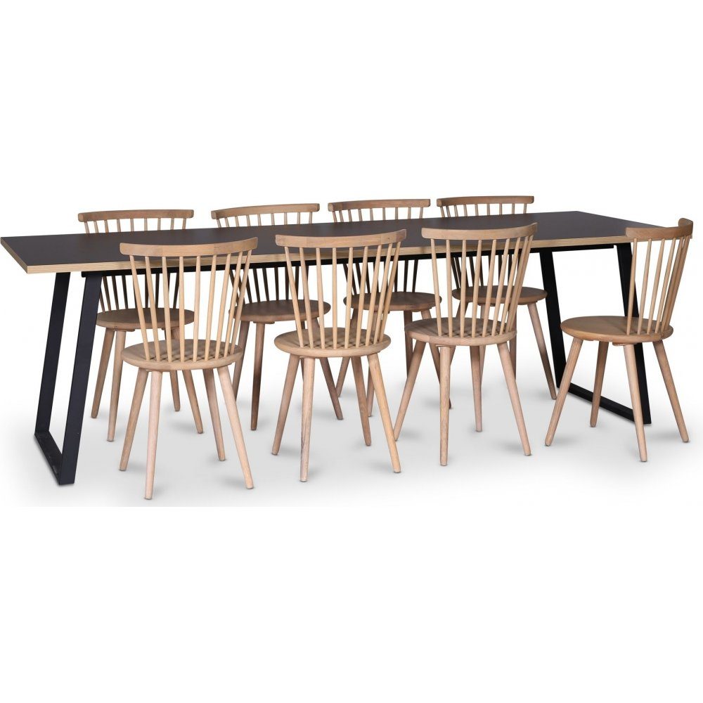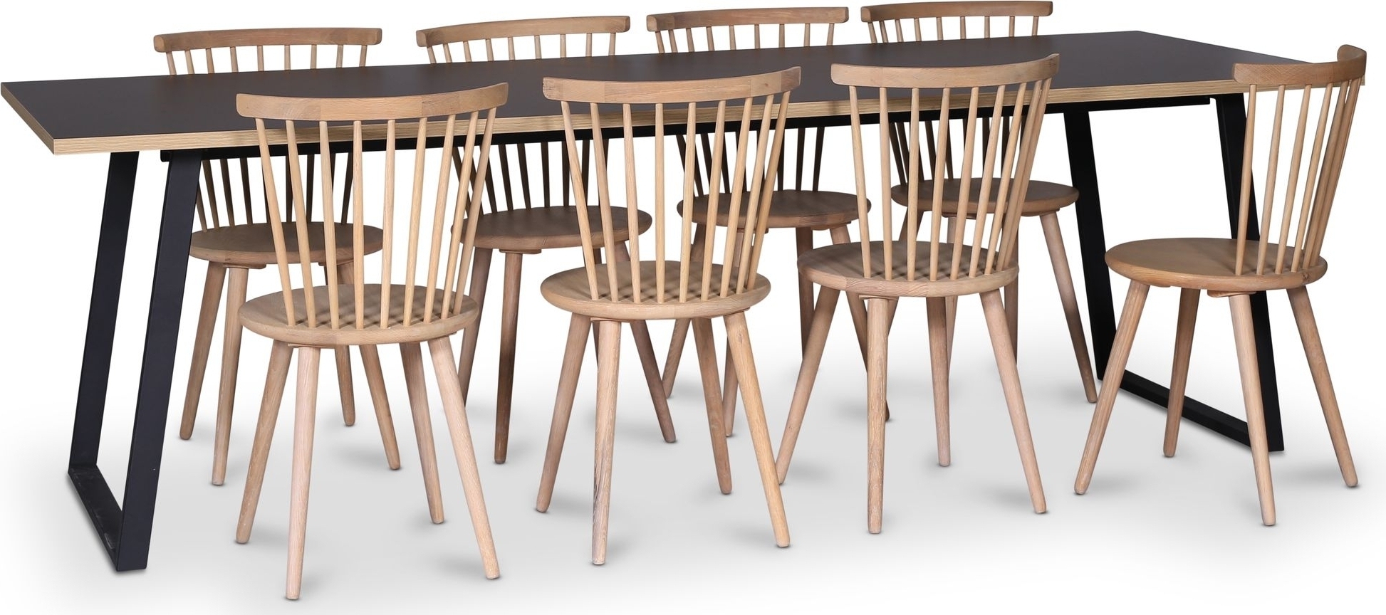 Edge 3.0 spisegruppe 240x90 cm inkludert 8 stk. hvitoljede Castor pinnestoler - svart høytrykkslaminat (HPL)