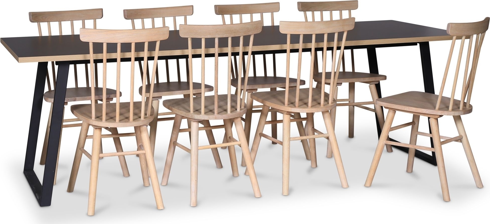 Edge 3.0 spisegruppe 240x90 cm inkludert 8 stk. hvitoljede Orust pinnestoler - svart høytrykkslaminat (HPL)