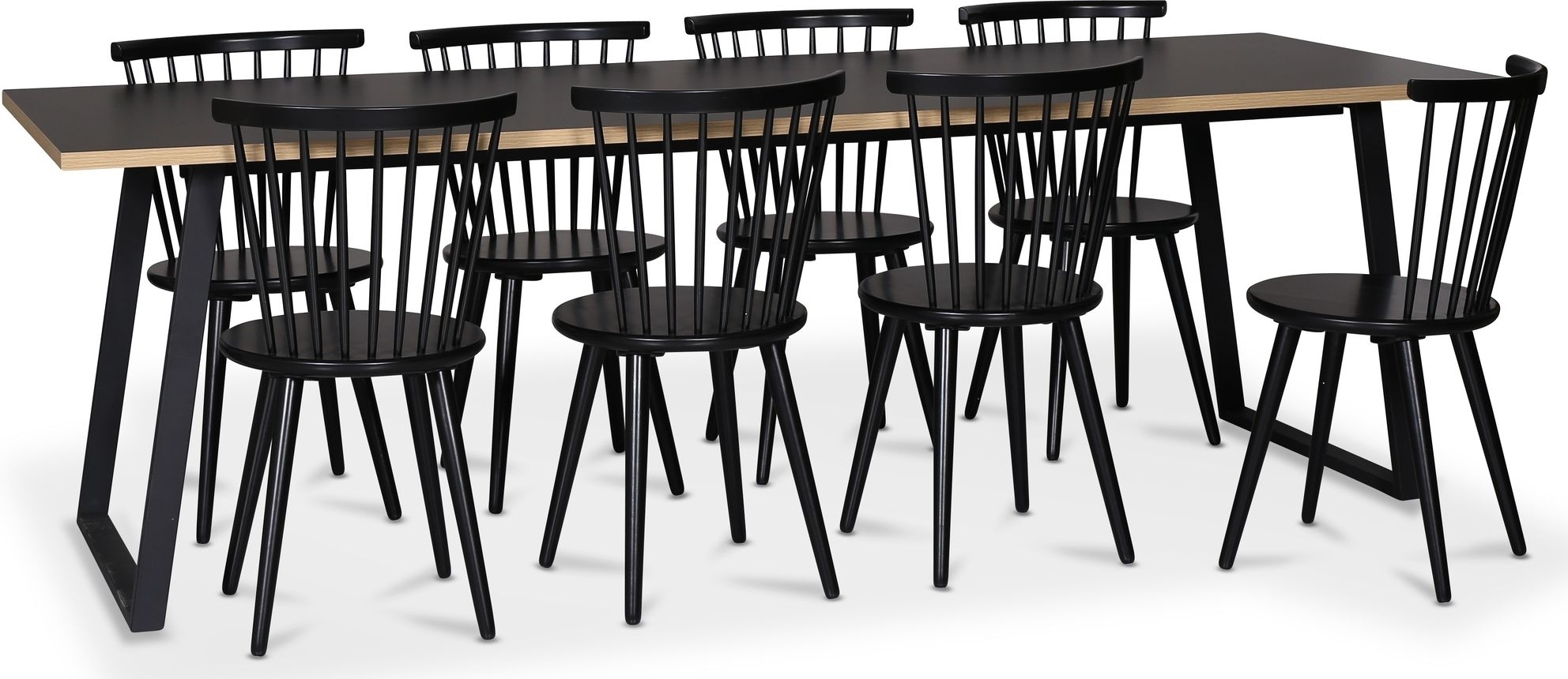 Inkludert 8 stk. Castor pinnestoler, en svart klassisk pinnestol i velkjent design. Castor står for ekte håndverk med høy kvalitet i produksjon og valg av materialer.
