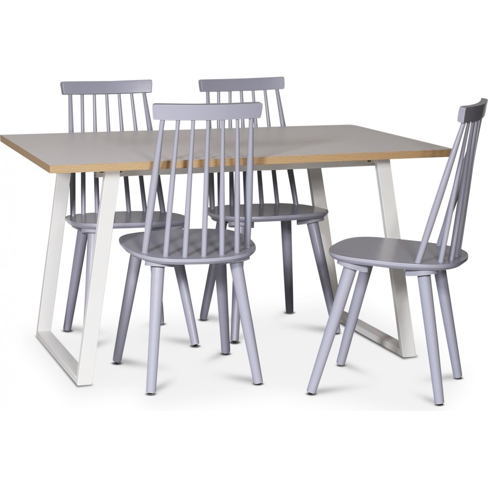 Edge spisegruppe; Spisebord i hvit HPL 140x90 cm med 4 grå Dalsland stokkstoler