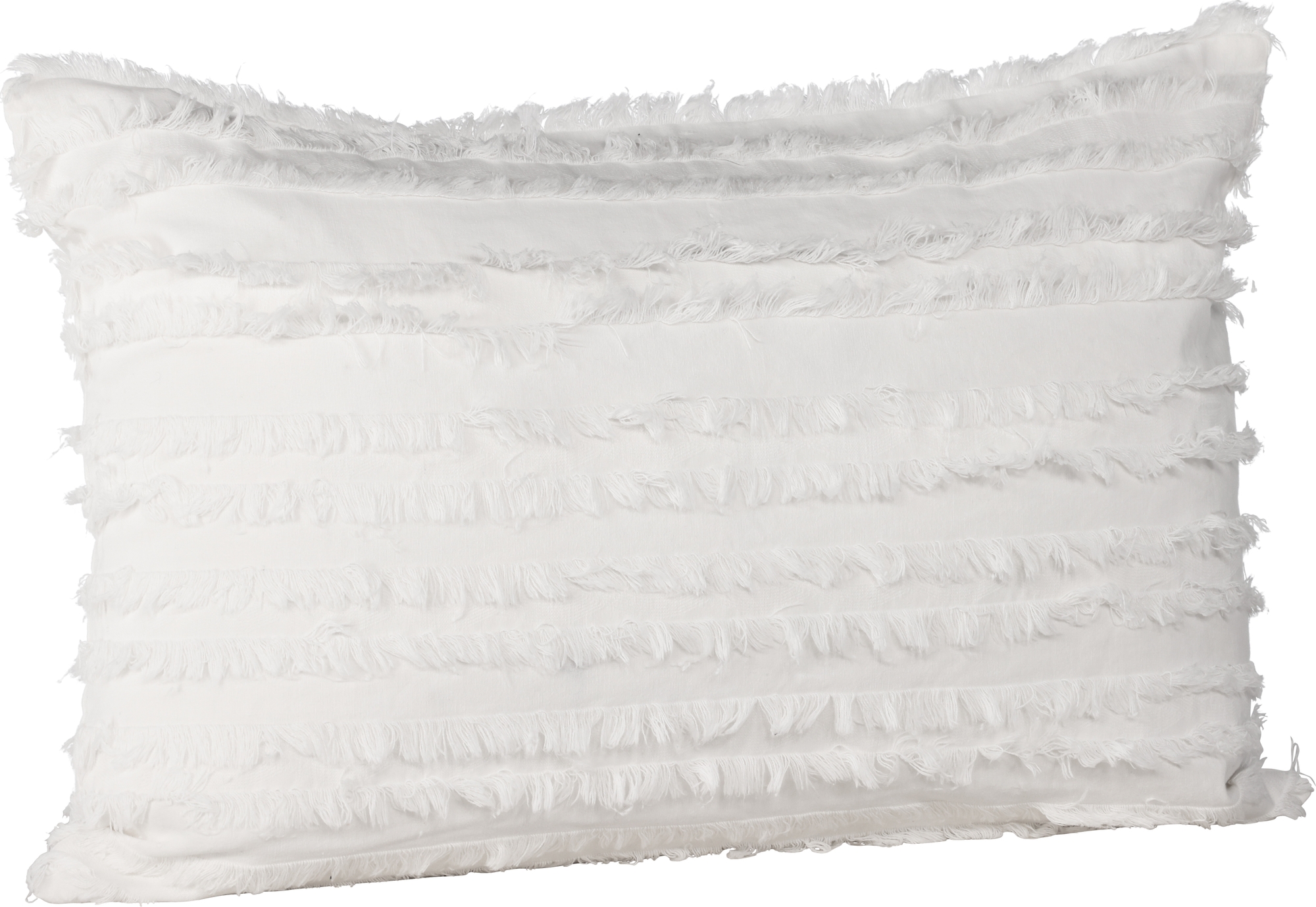 Putetrekket i slitesterkt bomullsstoff som tåler tidens tann. Etuiet har dekorative frynser som skaper et fint lineært mønster. Her i en snøhvit nyanse som enkelt matcher andre stiler i hjemmet. Kombiner med andre farger og størrelser for å skape et variert og motebevisst blikkfang for ditt interiør.
