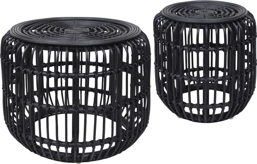 Sett bestående av 2 salongbord i svart rotting. Også tilgjengelig som naturlig farget og brun i samme serie.