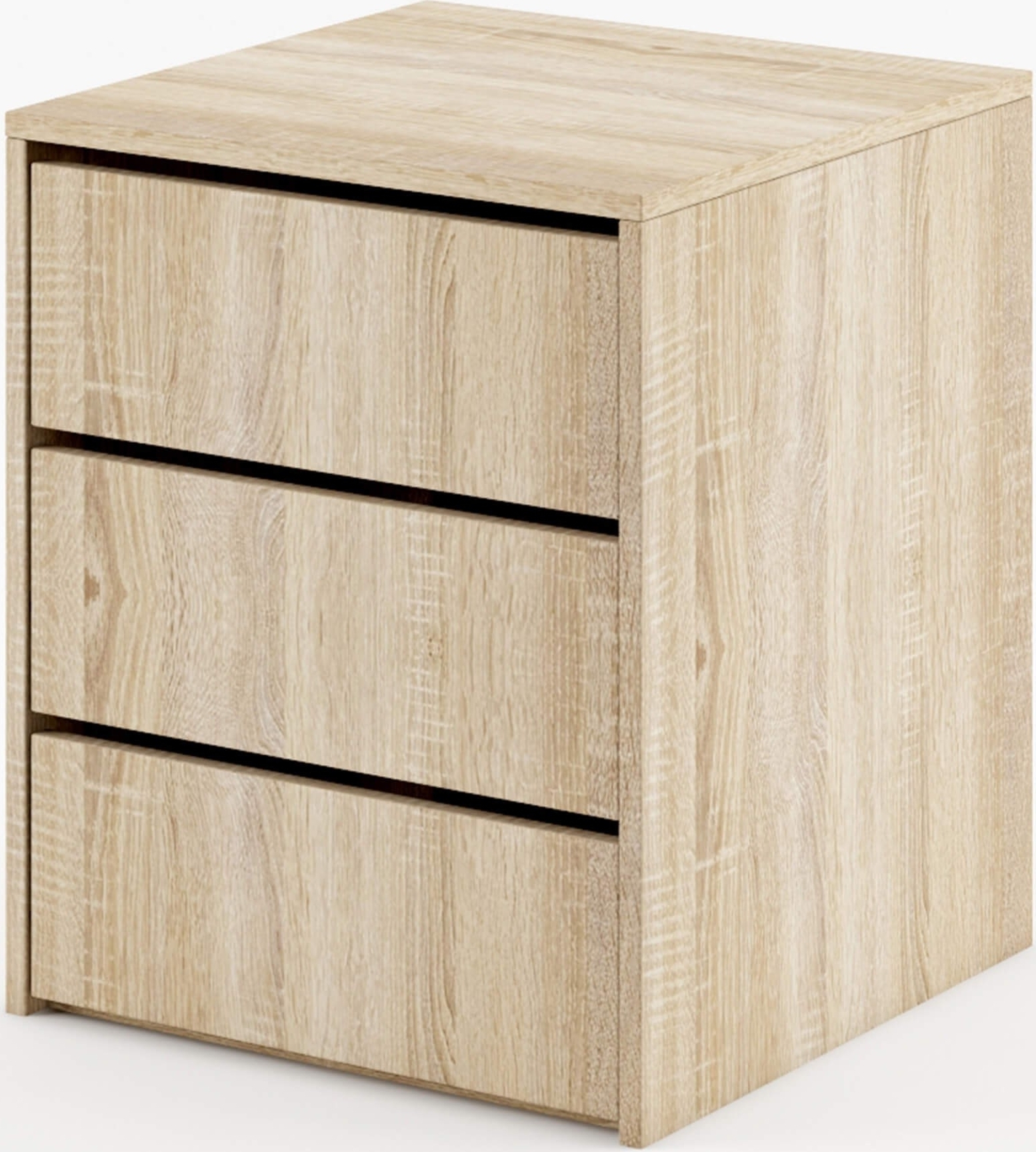 Kommode av sponplater. Plasthåndtak med matt finish. Leveres umontert.