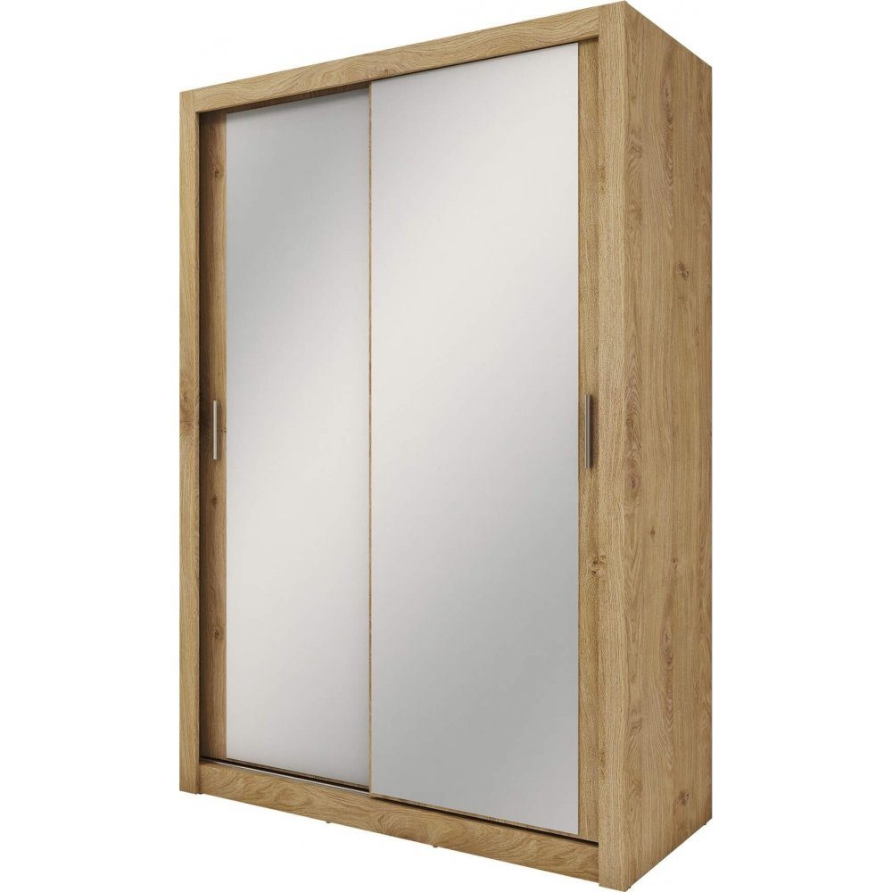Tregarderobe med speilskyvedører. Plasthåndtak med matt finish. Leveres umontert.