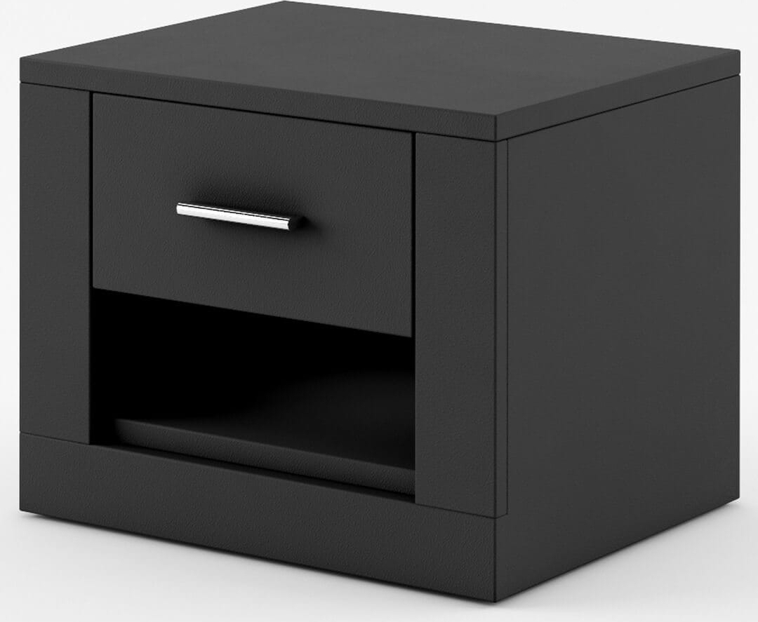 Nattbord av sponplater. Plasthåndtak med matt finish. Leveres umontert.