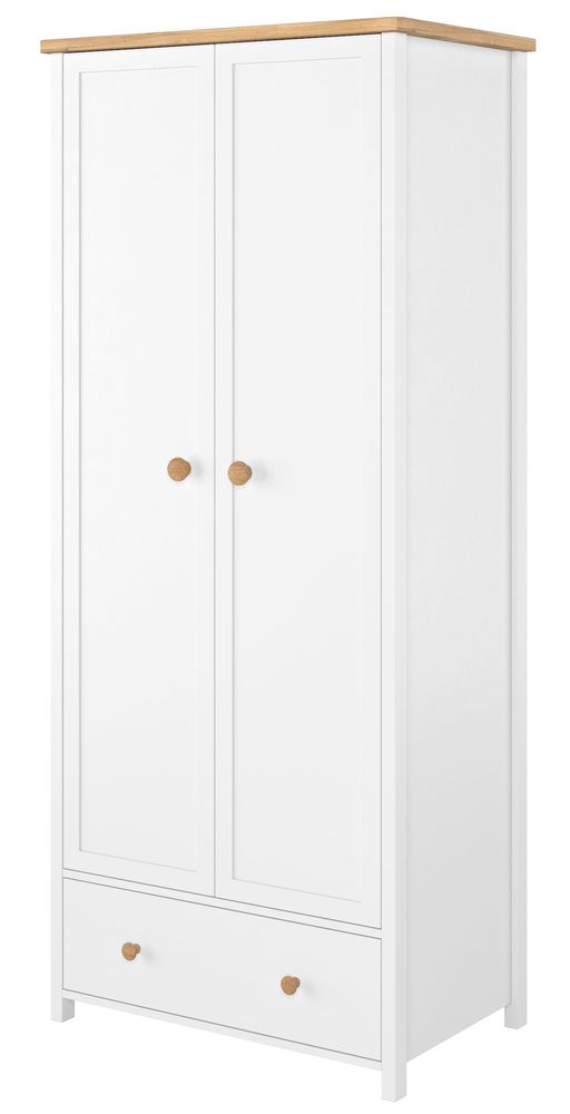 En koselig garderobe med en klassisk design. Tilvirket i MDF med gode oppbevaringmuligheter i form av et stort skap med klesstang og en skuff nedentil.