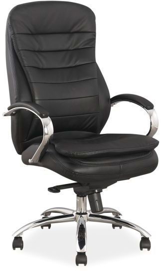 En nydelig kontorstol med moderne design. Stolen er laget av metall og plast, med et meget behagelig trekk i syntetisk skinn. Stolen har justerbar høyde ved hjelp av spaken under setet. Stolen er også lett å flytte takket være hjulene på stjernebasen.