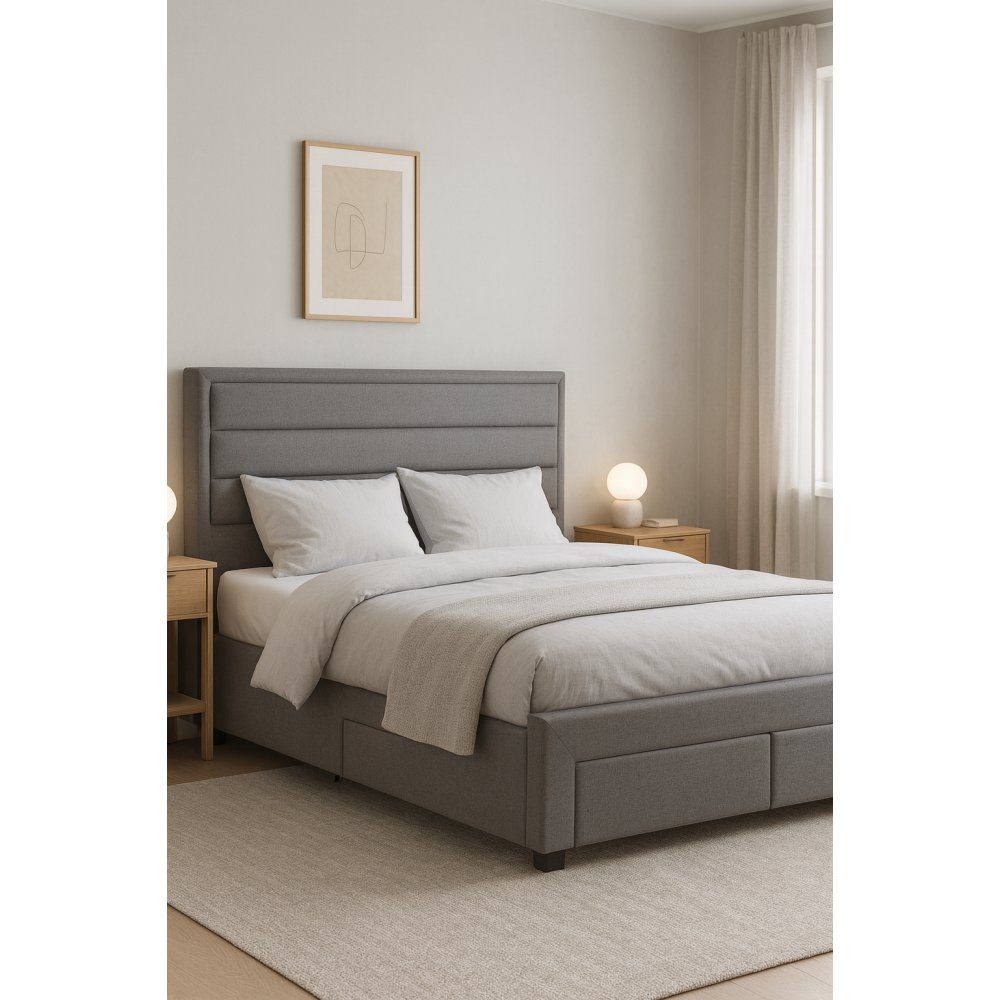 Seng med oppbevaring 160 x 200 cm grå