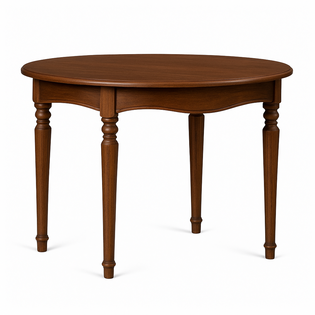 Elvira spisebord er et bord i heltre, med mange valgmuligheter når det gjelder utførelsen. Ramme og bein bygges i massivt tre, mens topplaten produseres i MDF som er dekket med naturfinér med valgfritt utseende.