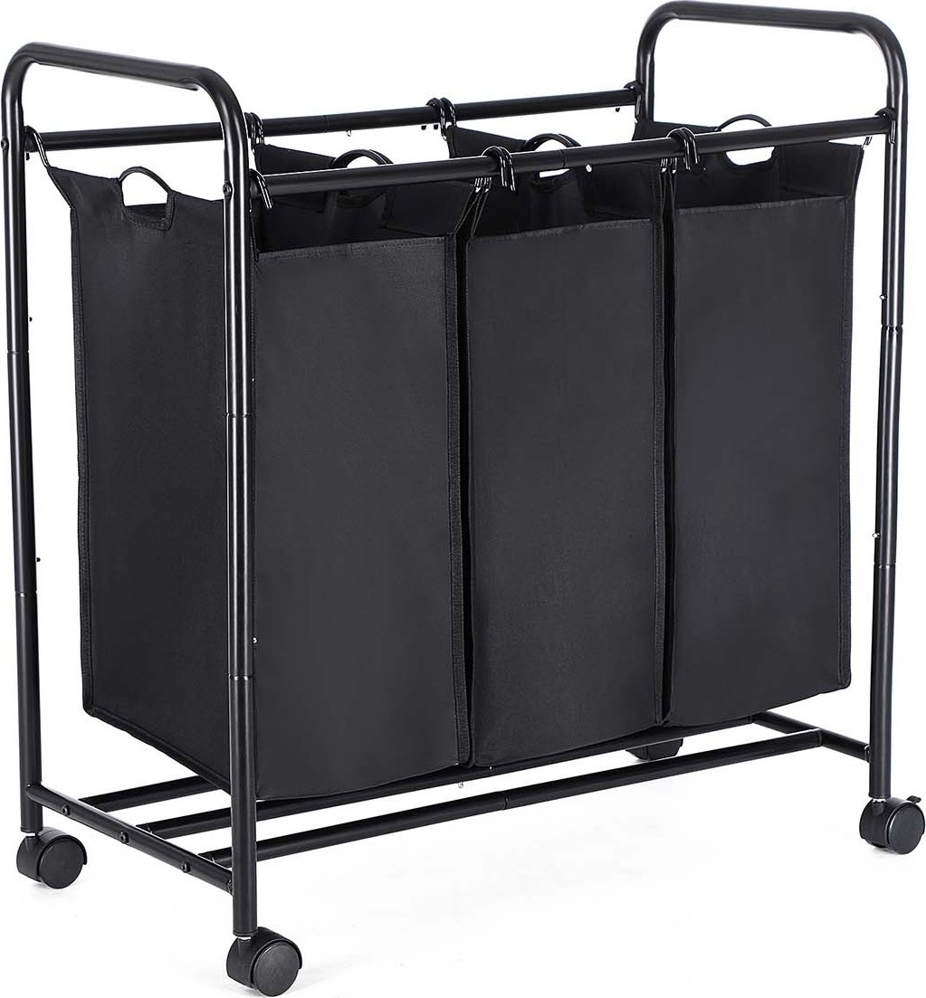 Stålvogn med 3 separate skittentøyskurver i polyester. Hver kurv rommer 44 liter.