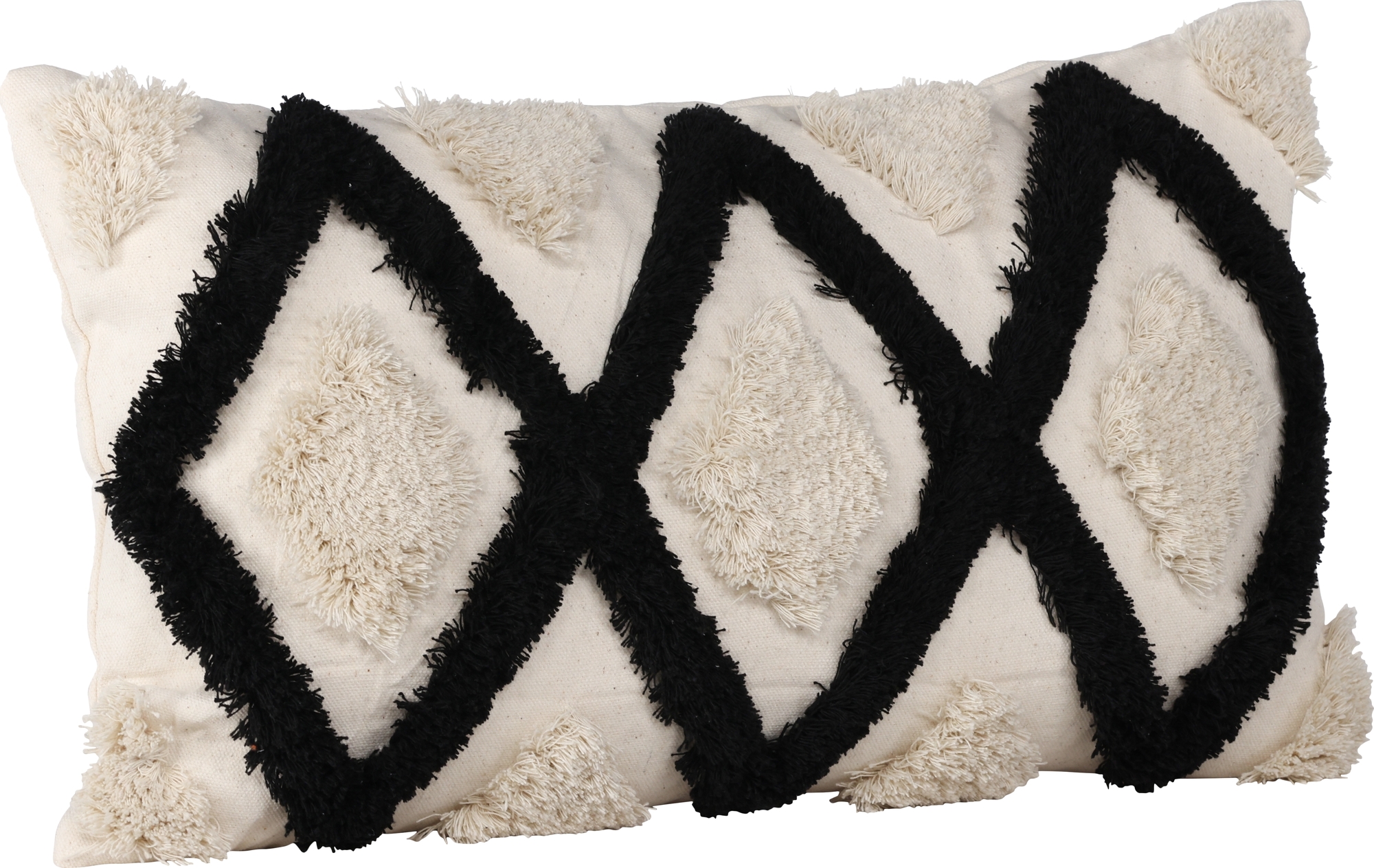 Putetrekk som kombinerer komfort med moderne design. Dette avlange putetrekket har en hvit fargebunn og et abstrakt mønster i tuftet materiale i både hvitt og svart. Laget i en perfekt polyester- og bomullsblanding som er både fleksibel og slitesterk. Skap et stilig blikkfang i sofagruppen med en trendy pute som enkelt kan matches og kombineres med andre putetrekk.