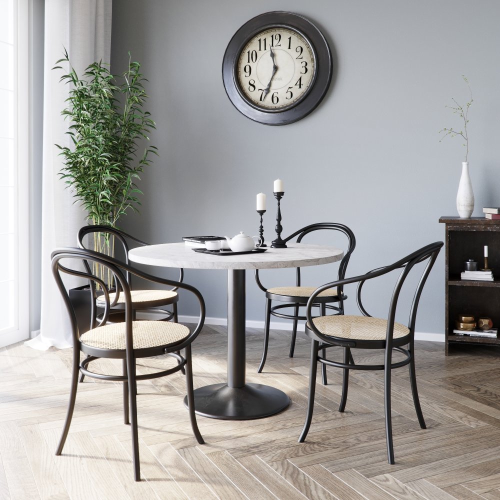 Empire spisegruppe, rundt spisebord Ø105 cm inkl. 4 stk. Böjträ karmstol No30 - Silver Diana marmor
