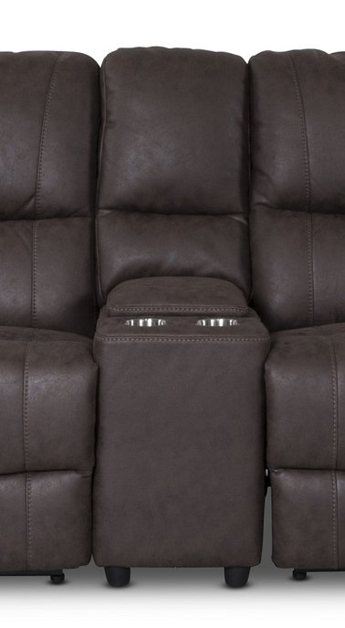 Denne 3-seter sofa har el-reclinerfunksjon i to av setene samt to konsoller mellom seter med drikkeholder og oppbevaringsrom.
