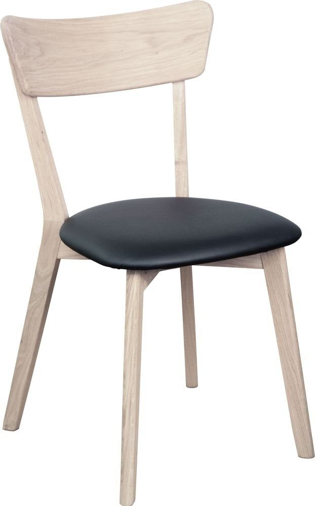 Amino spisestol med ramme laget av europeisk hvit pigmentert eik, svært behagelig ryggstøtte og sete laget av svart øko-lær. Også tilgjengelig i versjonen oljet eik..