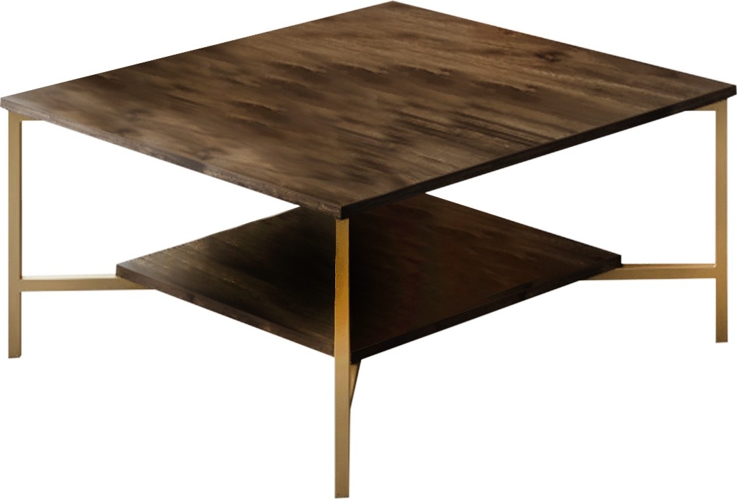 Erki salongbord 80 x 80 cm - Valnøtt/gull