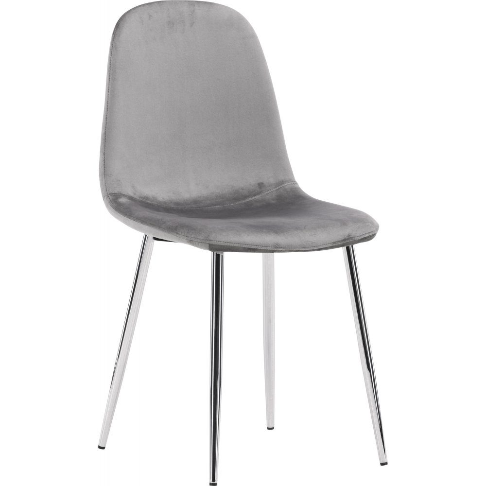 Moderne drømmestol i tidløs lys grå farge! Denne spisestuestolen har en helpolstret design med lett avrundet rygg og sete i fløyelsstoff og ben i lysegrå metall. Møbler hjertet av hjemmet innbydende og komfortabelt og nyt deilige måltider sammen!