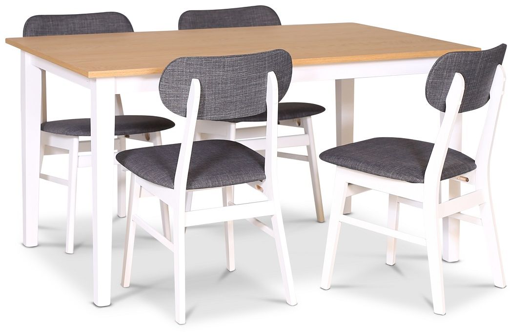 Fårö spisegruppe 140 cm inkl. 4 stk. Sarek grå spisestoler - Eik/hvit