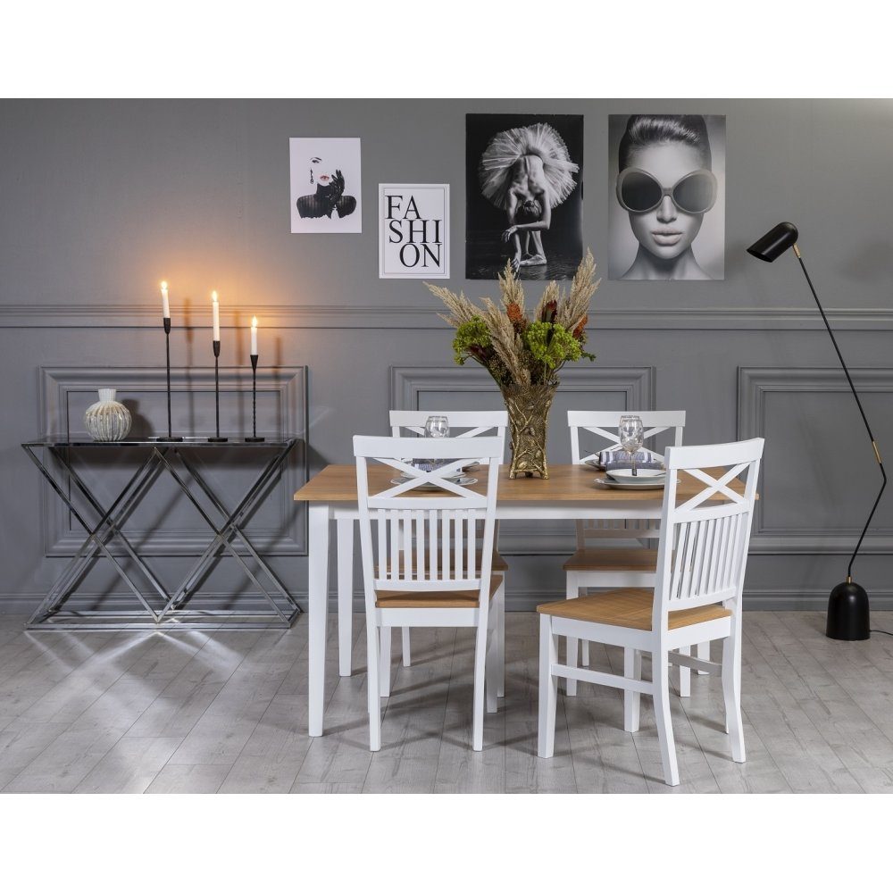 Fårö spisegruppe 140 cm inkludert 4 stk Fårö stoler med kryss - Eik/hvit