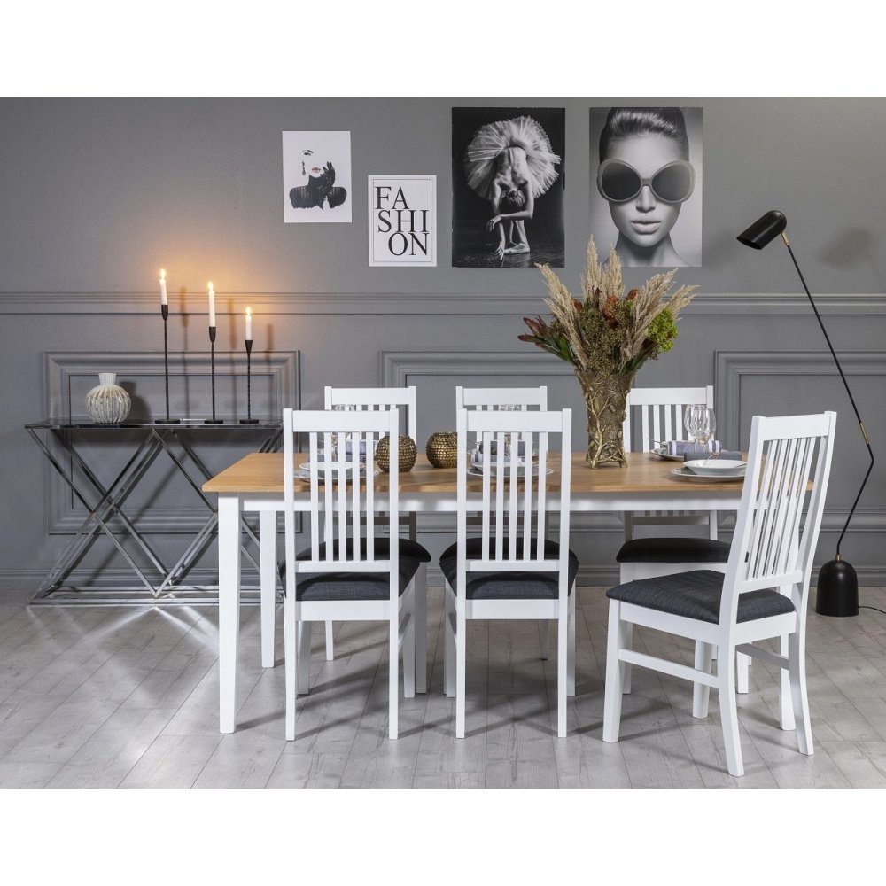 - Fårö spisegruppe: Bord 180 cm inkludert 6 Gåsö stoler - Hvit/Eik
